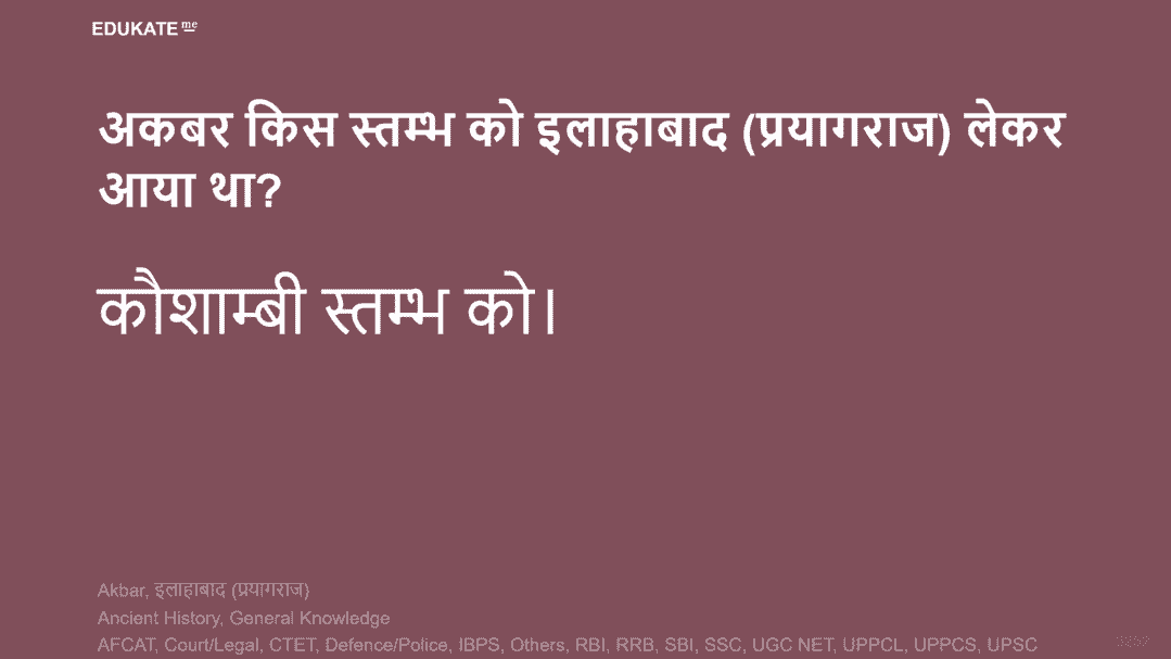 Akbar kis stambh ko Allahabad (Prayagraj) lekar aaya tha?