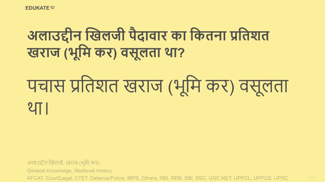 पचास प्रतिशत खराज (भूमि कर) वसूलता था।Subscribe to our youtube channel!