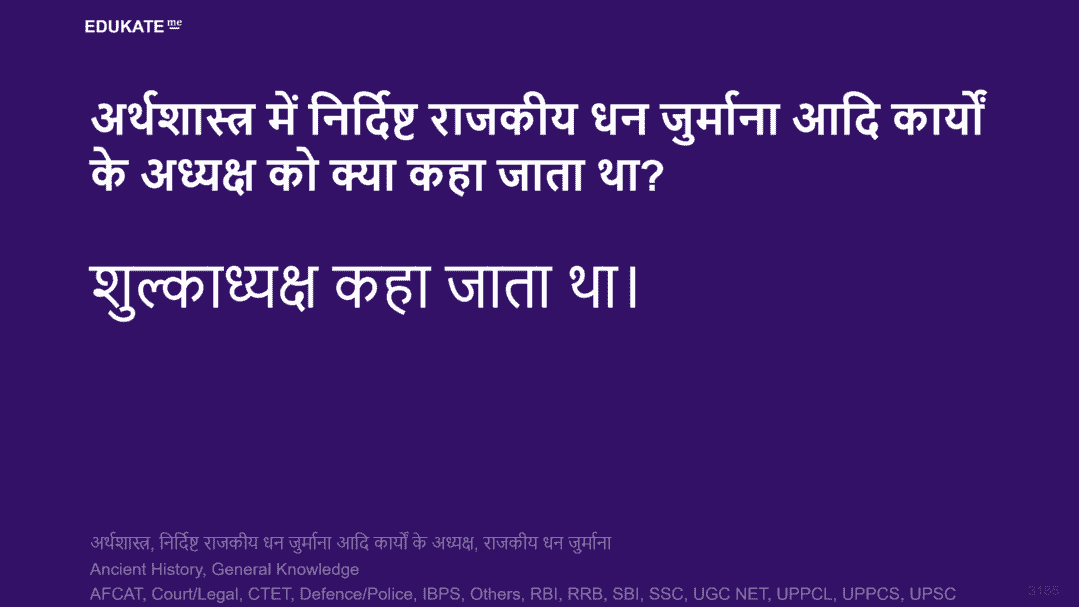 Tags: अर्थशास्त्रनिर्दिष्ट राजकीय धन जुर्माना आदि कार्याें के अध्यक्षराजकीय धन जुर्माना