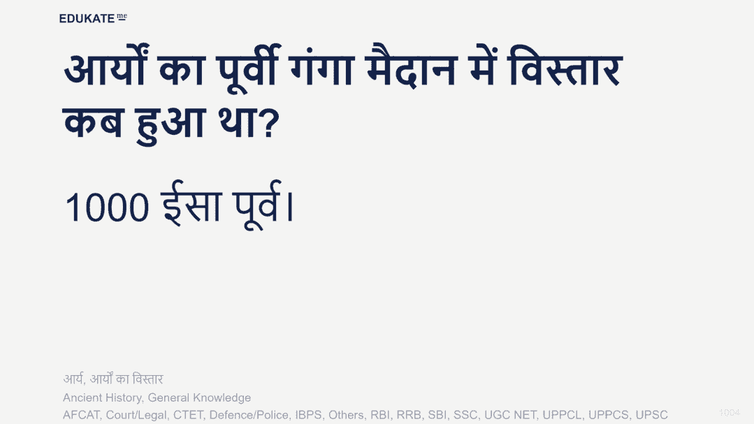 आर्यों का पूर्वी गंगा मैदान में विस्तार कब हुआ था?