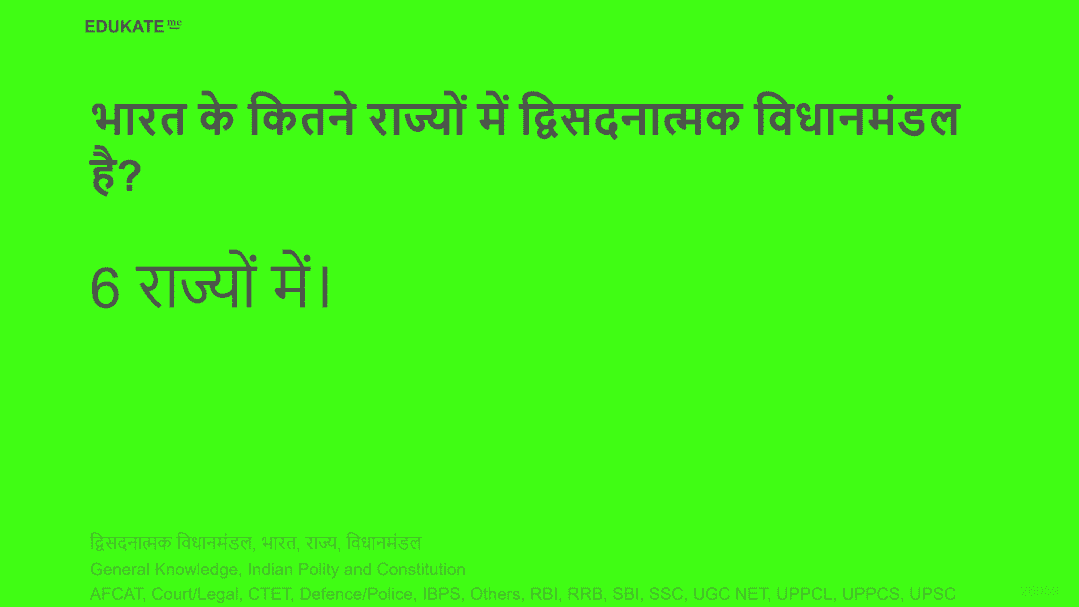 भारत के कितने राज्यों में द्विसदनात्मक विधानमंडल है?