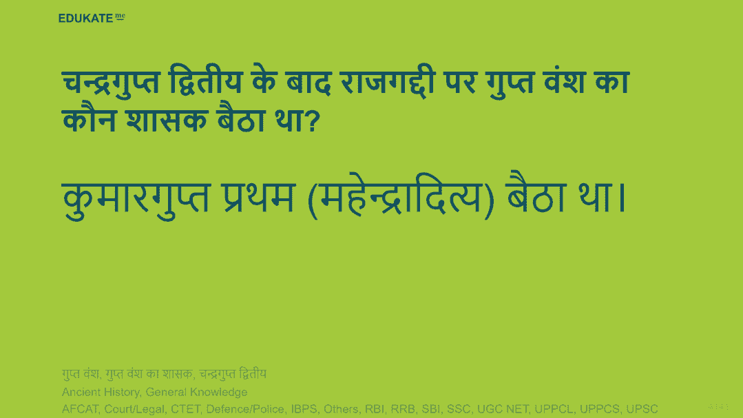 चन्द्रगुप्त द्वितीय के बाद राजगद्दी पर गुप्त वंश का कौन शासक बैठा था?