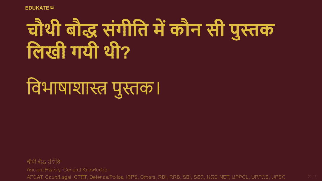 चौथी बौद्ध संगीति में कौन सी पुस्तक लिखी गयी थी?