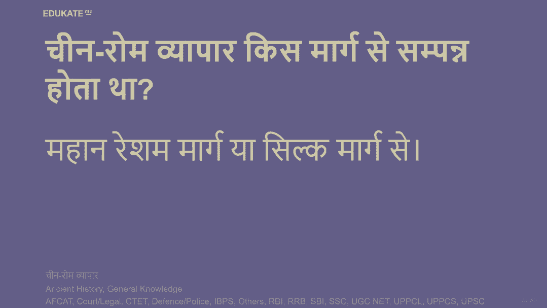 चीन-रोम व्यापार किस मार्ग से सम्पन्न होता था?