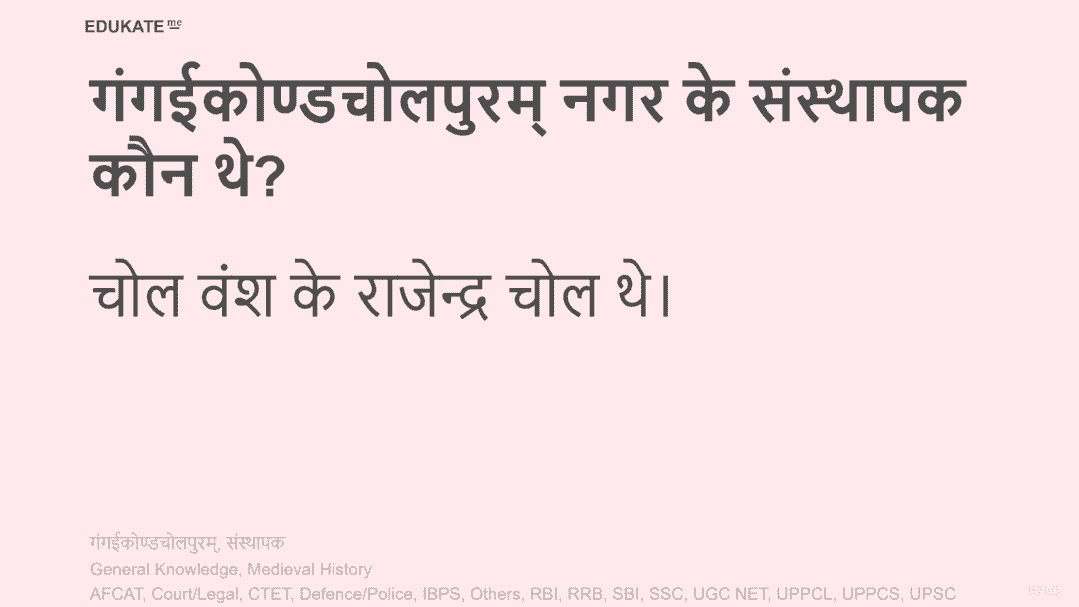 गंगईकोण्डचोलपुरम् नगर के संस्थापक कौन थे?
