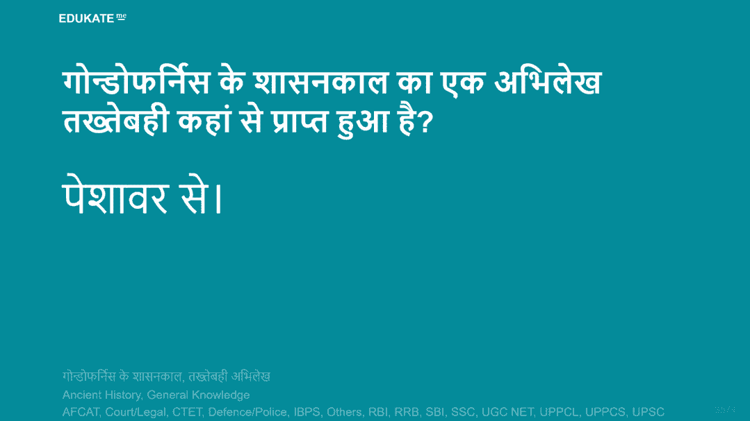 गोन्डोफर्निस के शासनकाल का एक अभिलेख तख्तेबही कहां से प्राप्त हुआ है?