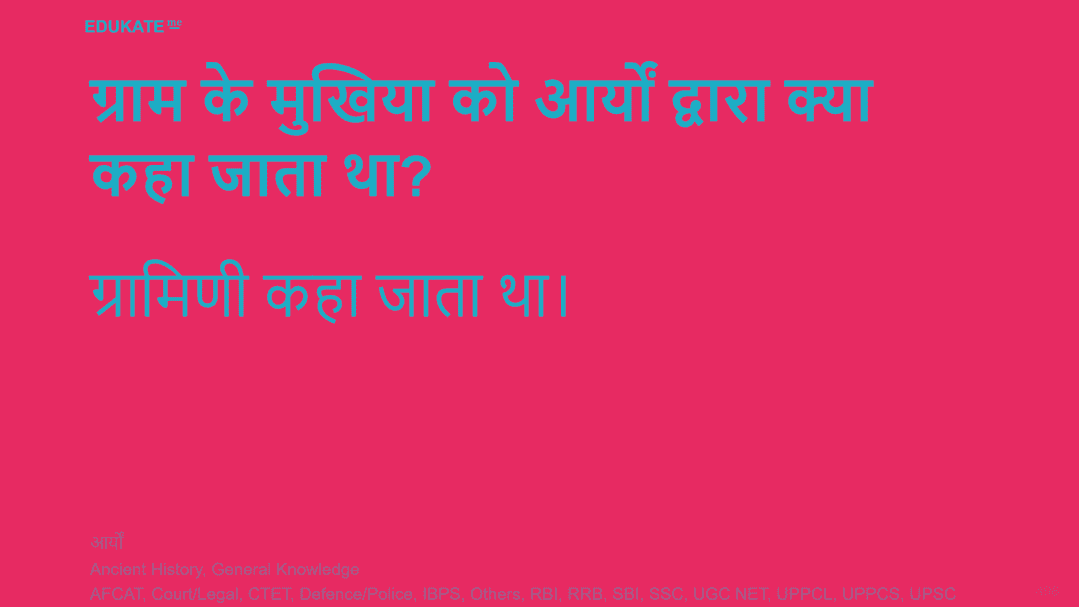 ग्राम के मुखिया को आर्यों द्वारा क्या कहा जाता था?