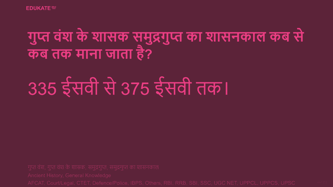 गुप्त वंश के शासक समुद्रगुप्त का शासनकाल कब से कब तक माना जाता है?