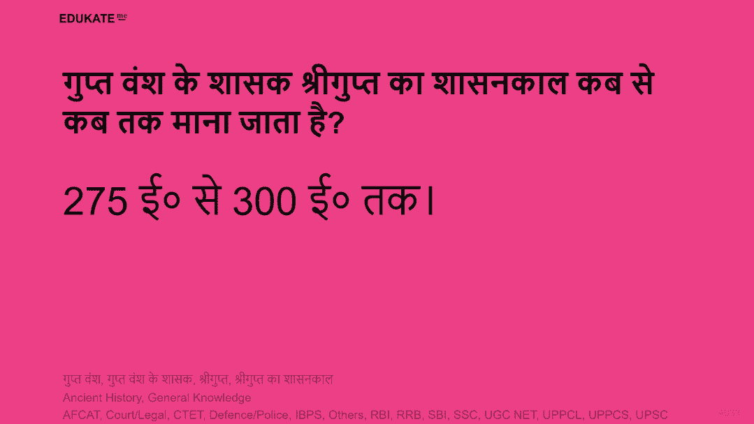 गुप्त वंश के शासक श्रीगुप्त का शासनकाल कब से कब तक माना जाता है?