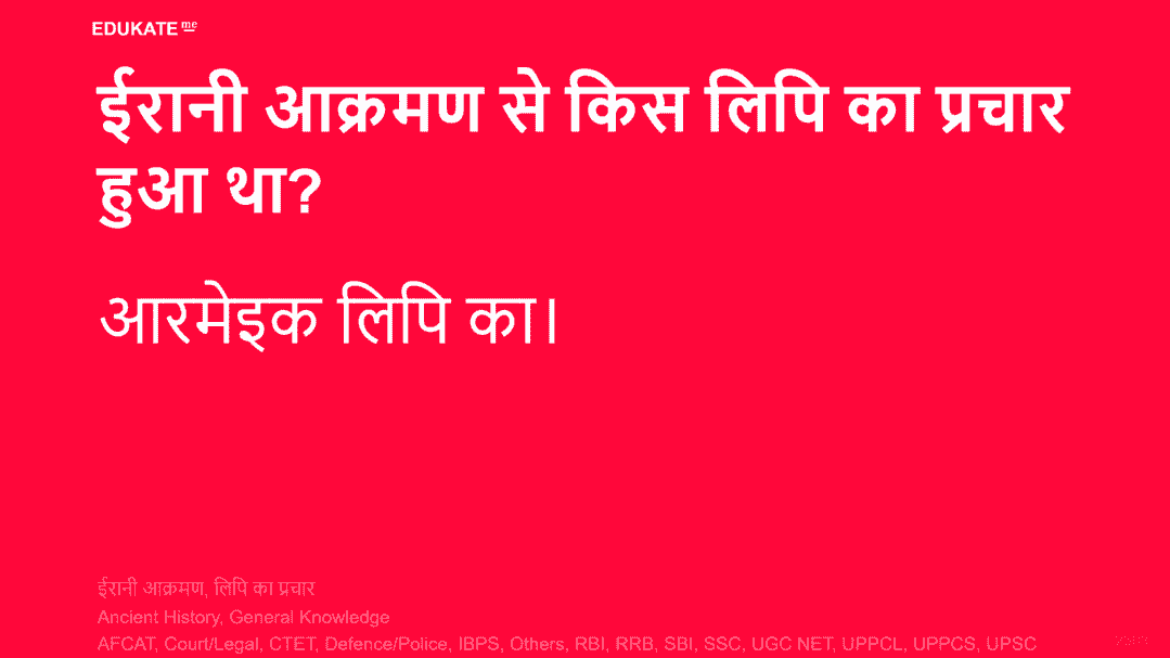 ईरानी आक्रमण से किस लिपि का प्रचार हुआ था?