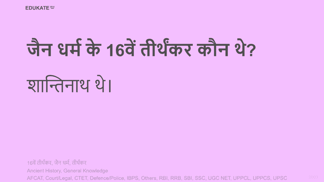 जैन धर्म के 16वें तीर्थंकर कौन थे?