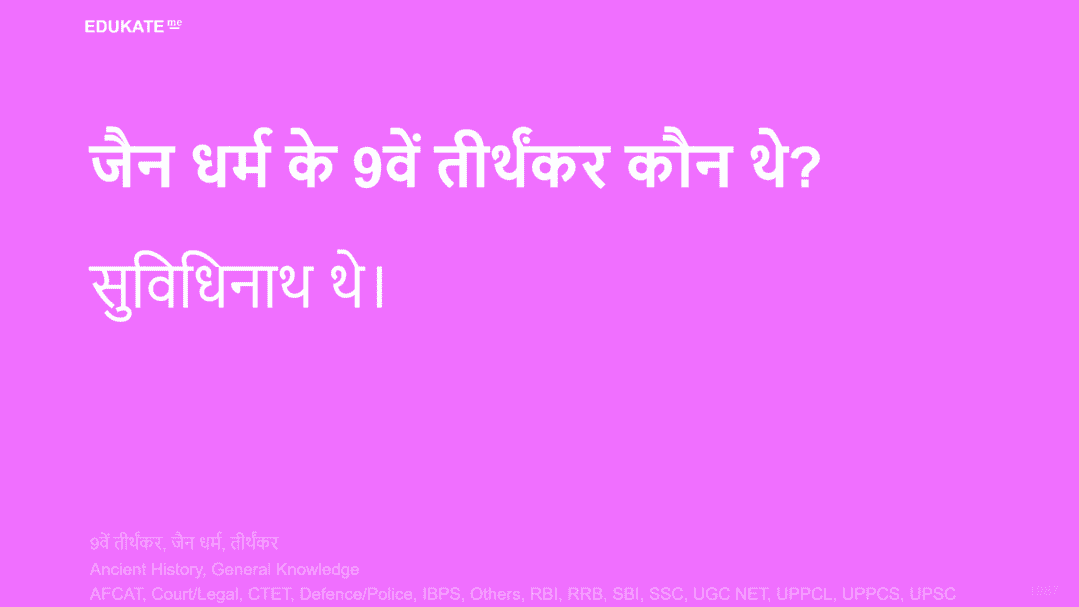 जैन धर्म के 9वें तीर्थंकर कौन थे?