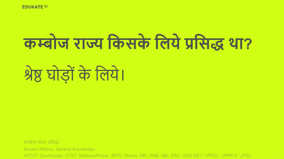 कम्बोज राज्य किसके लिये प्रसिद्ध था?