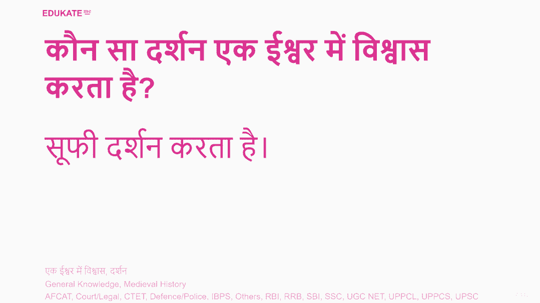 कौन सा दर्शन एक ईश्वर में विश्वास करता है?