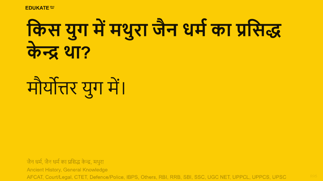 Kis yug mein mathura jain dharm ka prasiddh kendr tha?