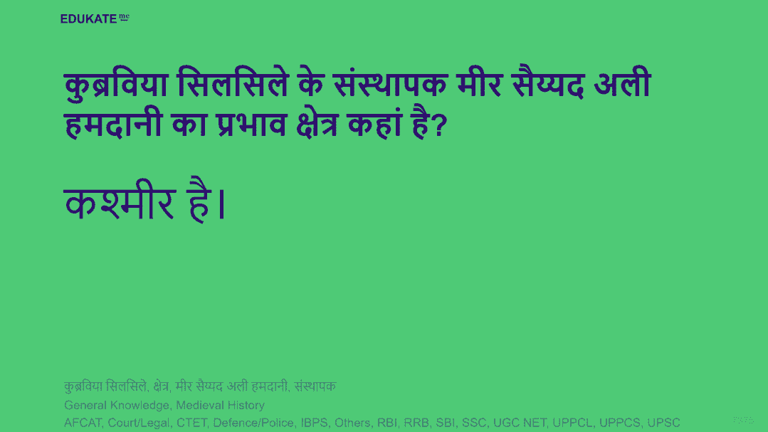 Tags: कुब्रविया सिलसिलेक्षेत्रमीर सैय्यद अली हमदानीसंस्थापक