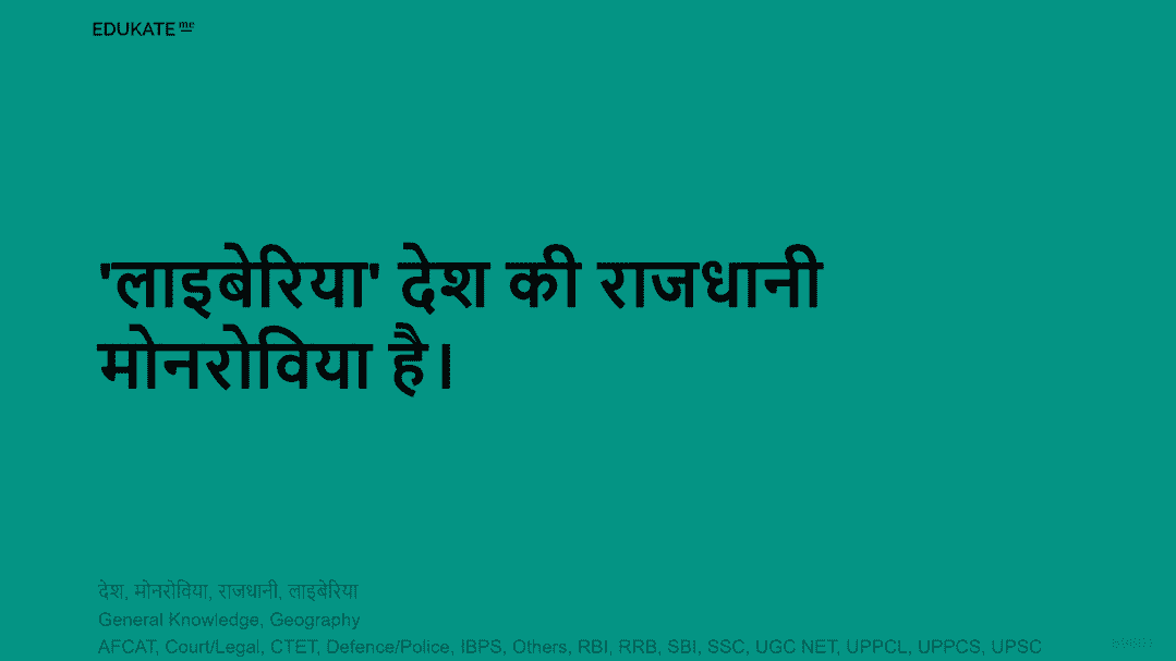 ‘लाइबेरिया’ देश की राजधानी मोनरोविया है।Subscribe to our youtube channel!