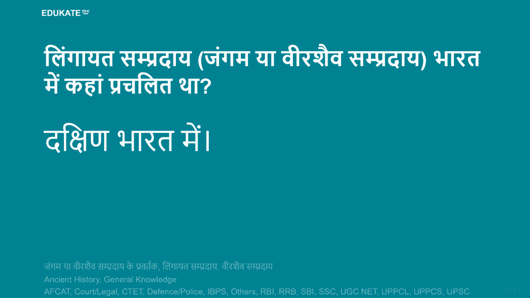 लिंगायत सम्प्रदाय (जंगम या वीरशैव सम्प्रदाय) भारत में कहां प्रचलित था?