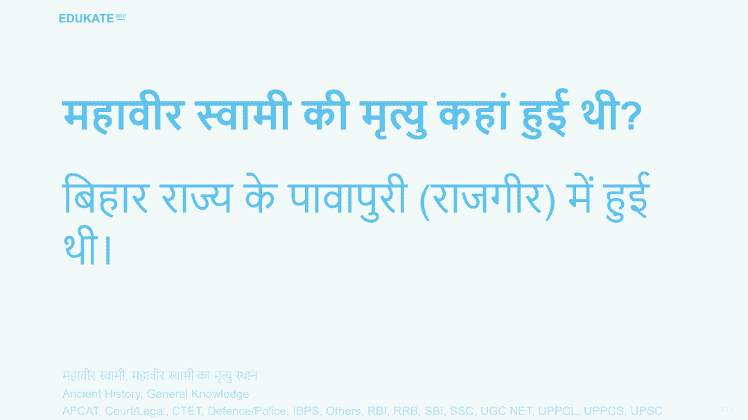 Tags: महावीर स्वामीमहावीर स्वामी का मृत्यु स्थान