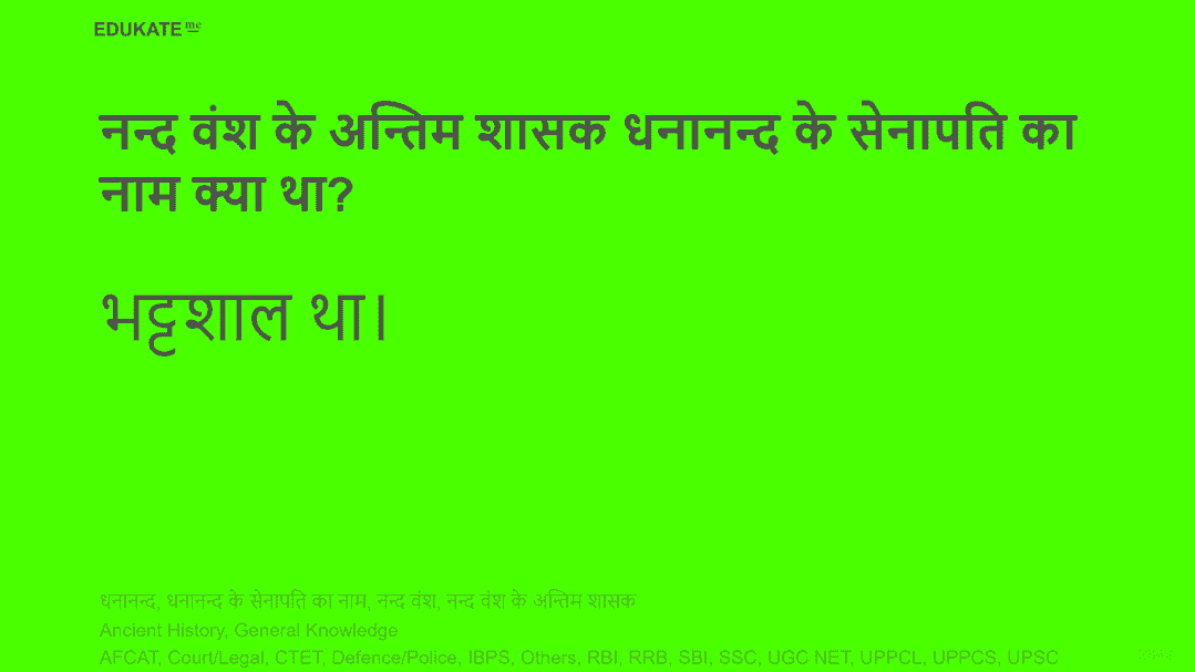 Tags: धनानन्दधनानन्द के सेनापति का नामनन्द वंशनन्द वंश के अन्तिम शासक