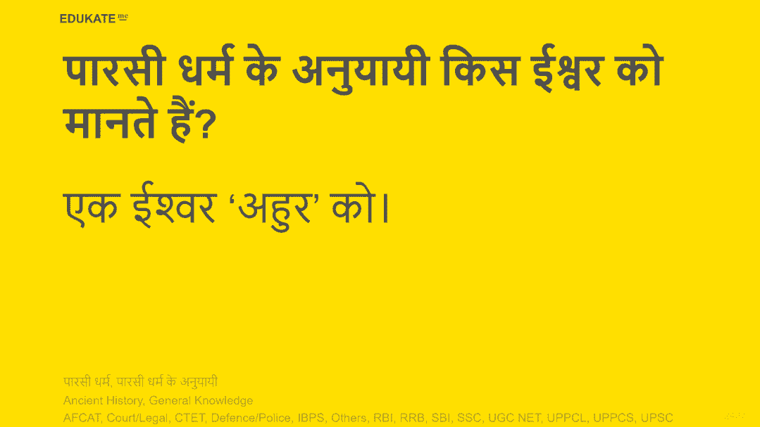 पारसी धर्म के अनुयायी किस ईश्वर को मानते हैं?