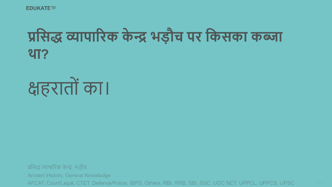 प्रसिद्ध व्यापारिक केन्द्र भड़ौच पर किसका कब्जा था?