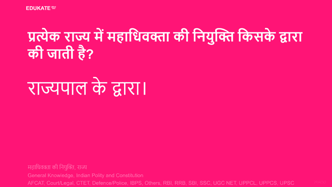 प्रत्येक राज्य में महाधिवक्ता की नियुक्ति किसके द्वारा की जाती है?