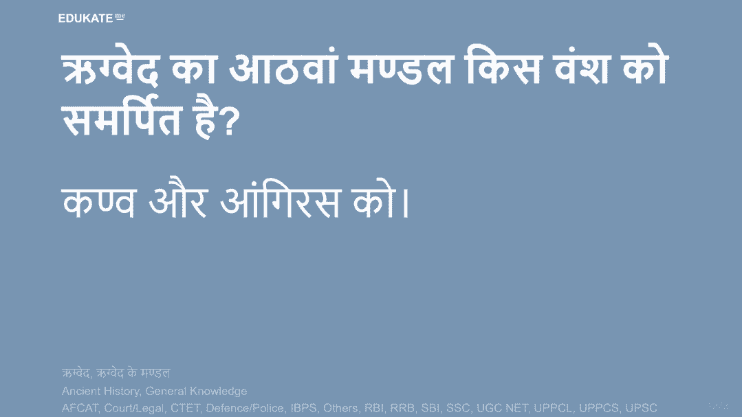 ऋग्वेद का आठवां मण्डल किस वंश को समर्पित है?