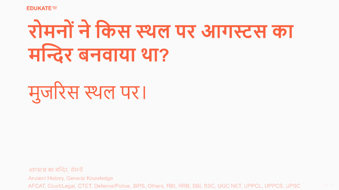 Romanon ne kis sthal par Augustus ka mandir banvaya tha?