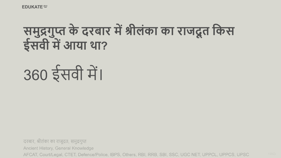 समुद्रगुप्त के दरबार में श्रीलंका का राजदूत किस ईसवी में आया था?