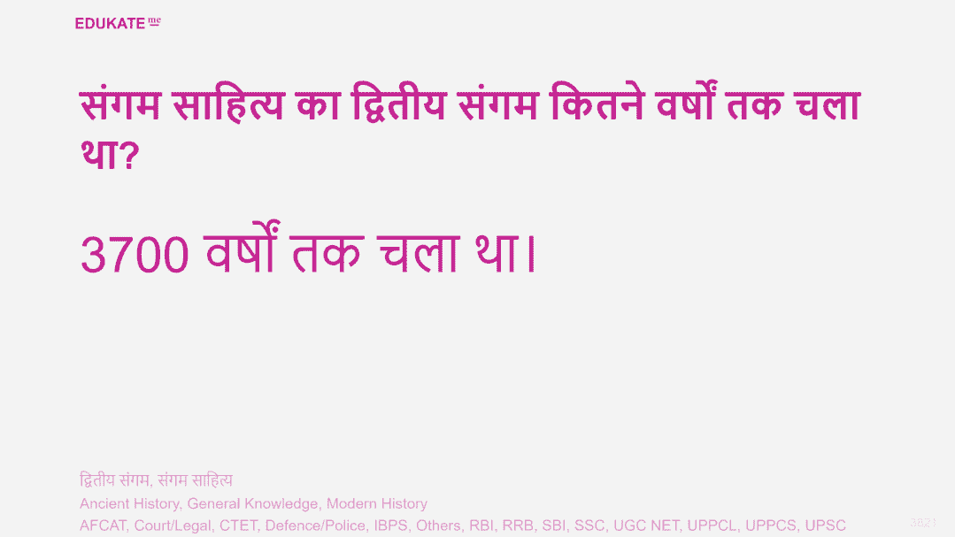 संगम साहित्य का द्वितीय संगम कितने वर्षों तक चला था?