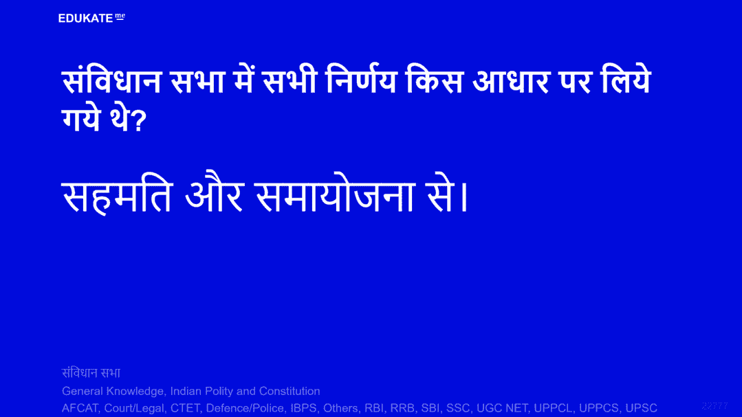Sanvidhan Sabha mein Sabhi Nirnay kis Aadhar par liye gaye the?