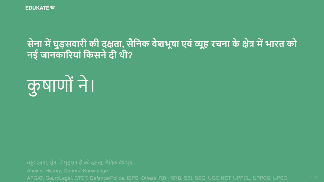 सेना में घुड़सवारी की दक्षता, सैनिक वेशभूषा एवं व्यूह रचना के क्षेत्र में भारत को नई जानकारियां किसने दी थी?