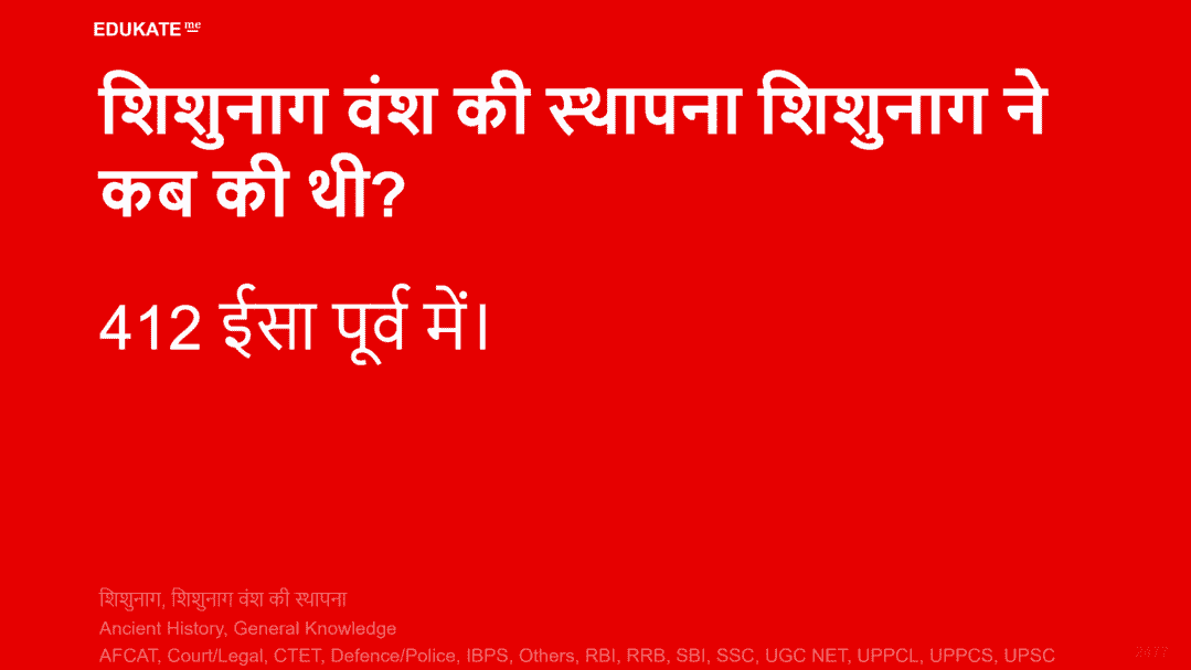 शिशुनाग वंश की स्थापना शिशुनाग ने कब की थी?