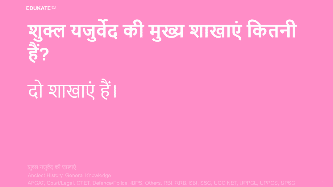 शुक्ल यजुर्वेद की मुख्य शाखाएं कितनी हैं?