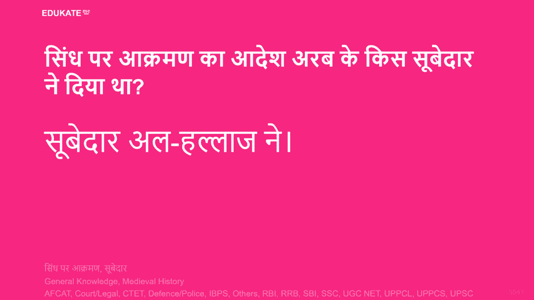 सिंध पर आक्रमण का आदेश अरब के किस सूबेदार ने दिया था?