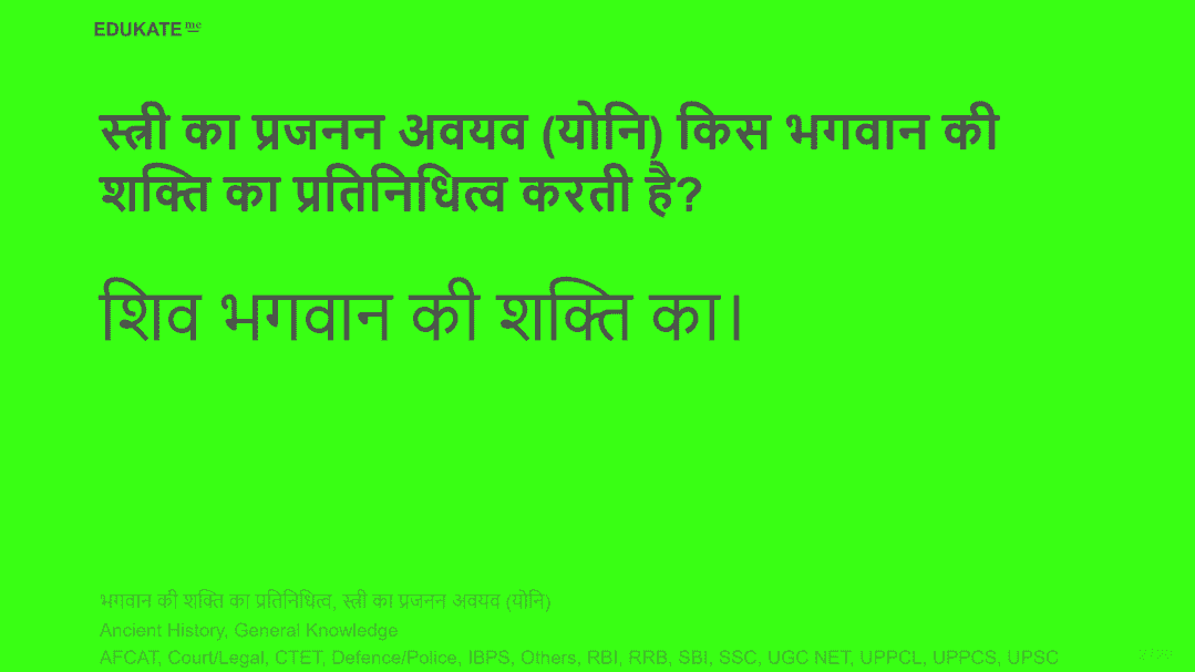 स्त्री का प्रजनन अवयव (योनि) किस भगवान की शक्ति का प्रतिनिधित्व करती है?