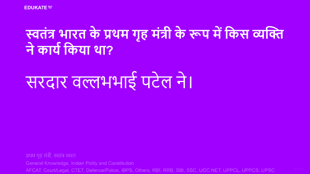 स्वतंत्र भारत के प्रथम गृह मंत्री के रूप में किस व्यक्ति ने कार्य किया था?