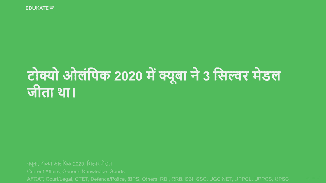 टोक्यो ओलंपिक 2020 में क्यूबा ने 3 सिल्वर मेडल जीता था।Subscribe to our youtube channel!