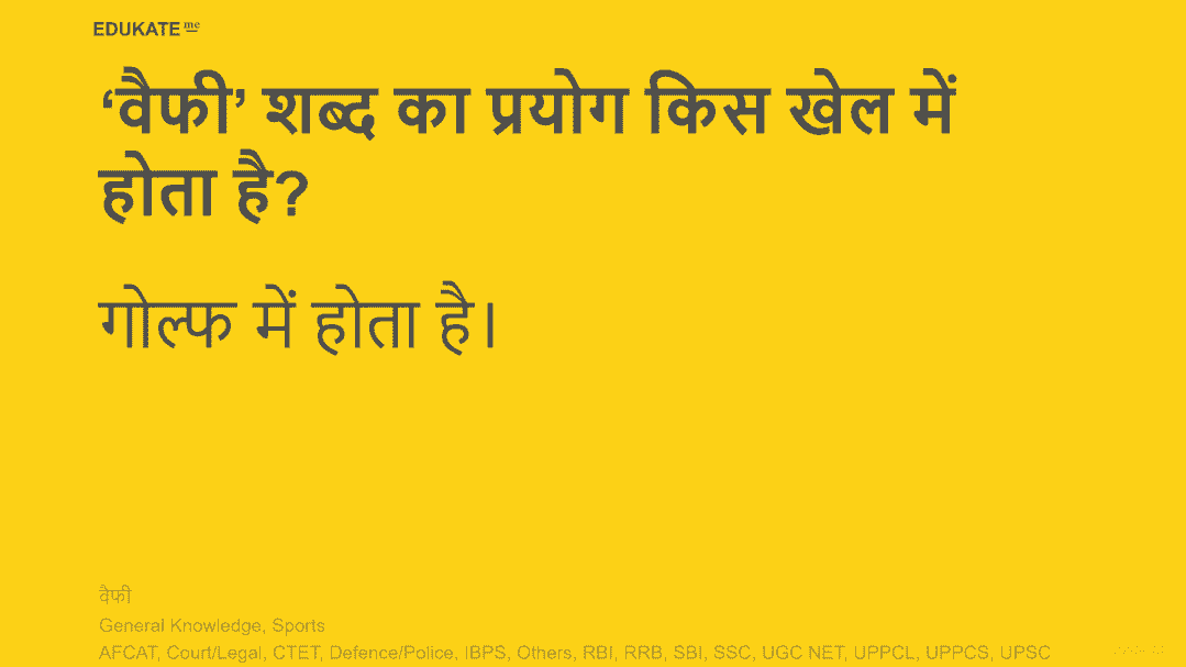 ‘वैफी’ शब्द का प्रयोग किस खेल में होता है?