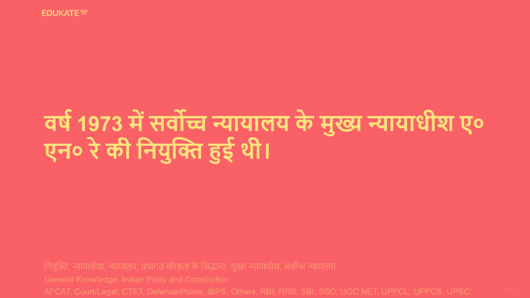 वर्ष 1973 में सर्वोच्च न्यायालय के मुख्य न्यायाधीश ए० एन० रे की नियुक्ति हुई थी।Subscribe to our youtube channel!