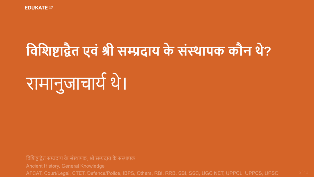 Vishishtaadvait evam shree sampradaay ke sansthaapak kaun the?